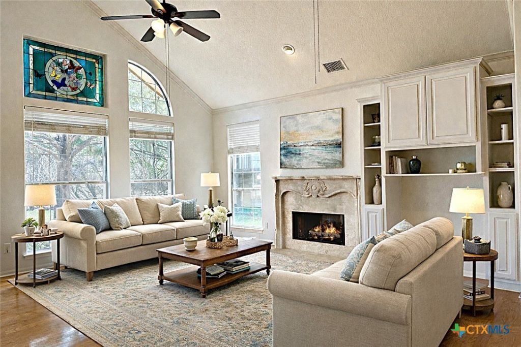 Exceptional estate property in Tahitian Village offering a thoughtfully designed main residence, fully equipped guest house, and resort-style outdoor living on approximately 1.52 acres. The main home features 4 bedrooms, 3 full bathrooms, a dedicated office, and a versatile flex space suitable for a formal dining room or additional sitting area. The interior has been recently repainted and is move-in ready with a fresh, neutral palette. The multi-level floor plan provides generous living areas, well-proportioned bedrooms, and seamless flow for both everyday living and entertaining. A unique design feature includes direct exterior access from the third bathroom to the pool and patio area ? ideal for convenient indoor/outdoor use. The detached guest house offers exceptional flexibility with a full kitchen, dining area, living room, laundry, and primary suite on the main level. Upstairs includes two additional bedrooms connected by a Jack-and-Jill bathroom, plus a secondary living area. This configuration allows for extended guest accommodations, multi-generational living, or private retreat space. Outdoor amenities are designed for relaxation and entertaining, highlighted by a private pool and spa with a waterfall edge feature. The surrounding patio area provides ample space for gatherings and outdoor enjoyment. Located in Bastrops Tahitian Village community with convenient access to local amenities, golf, and major commuter routes. Buyer to verify square footage.