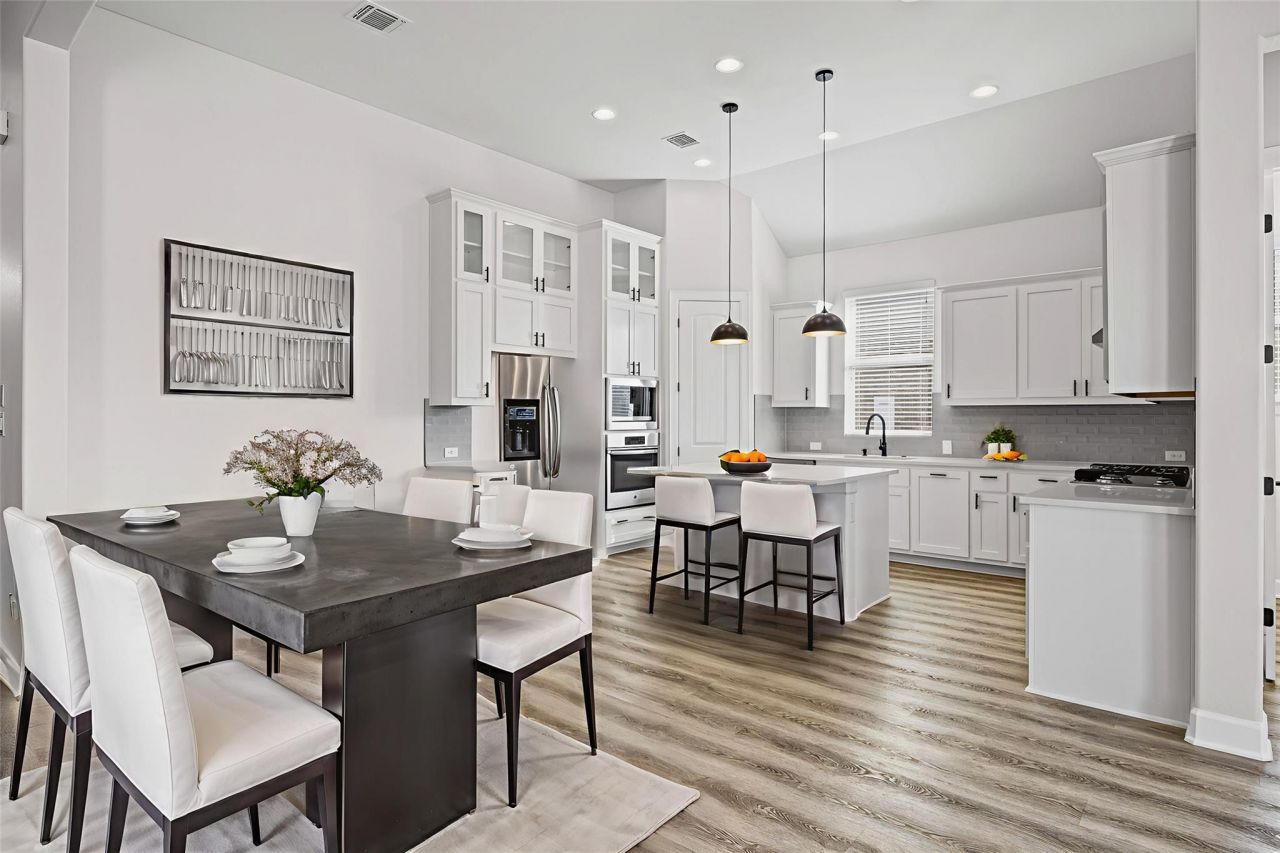 Discover modern Hill Country living in the desirable gated community of Arrowhead Ranch in Dripping Springs. This beautiful three bedroom, three and a half-bathroom home plus two dedicated offices plus a flex room has been refreshed from top to bottom, offering style and functionality. Single story living with a second floor escape! Fresh interior paint extends floor to ceiling and is complemented by a cohesive look of repainted kitchen and bathroom cabinets adorned with new black hardware. Stylish, updated ceiling fans circulate throughout the home, while the living area is anchored by a newly updated fireplace featuring custom tile and a new mantle.The upgrades continue with thoughtful touches in every room, including new black hardware and designer lighting. The bathrooms are transformed with new framed mirrors, toilets, sink fixtures, and shower fixtures for a sleek, contemporary feel. The custom primary bath is a true sanctuary, boasting new flooring and a stunning new shower with custom-built glass, high-end tile, elegant niches, and sophisticated black shower fixtures. The kitchen is equipped for a modern chef, featuring a new stainless steel stovetop, microwave, hood range and faucet. New flooring installed in the kitchen, dining, living, entry, primary bedroom and primary bathroom.A versatile second-floor loft provides the perfect flex space, ideal for a game room or suite. Other features include a new patio door glass that floods the space with natural light, two tankless water heaters and a water softener system that will convey with the home. Step outside to enjoy the private backyard, which backs to a serene green belt with easy access to community trails.Perfectly positioned in the highly sought-after Dripping Springs, known for its excellent schools, this home is your gateway to the Hill Country while remaining close to Austin. Don't miss the opportunity to own this retreat where every detail has been carefully curated.