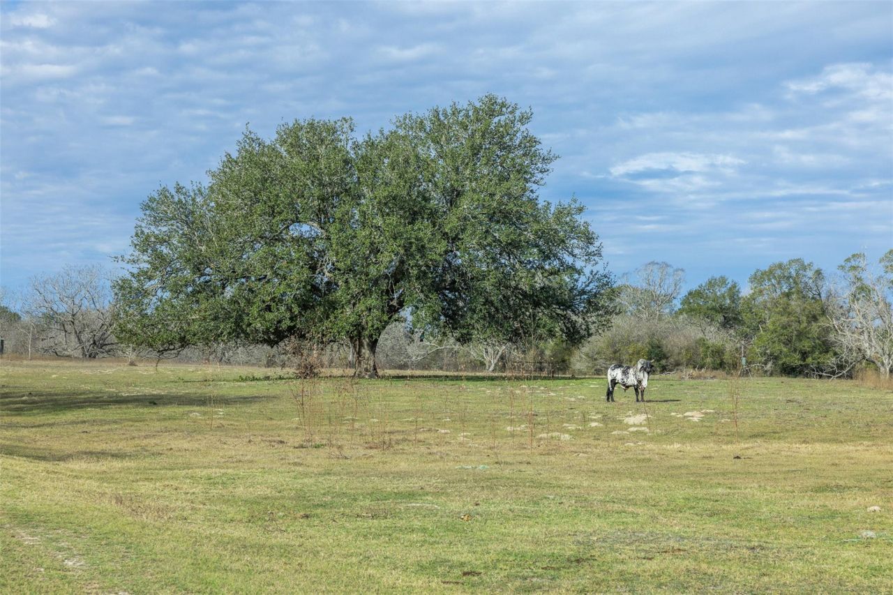 The tract has roughly 10 feet of elevation change, giving it a nice, gently rolling feel with good drainage. Live Oak Creek (wet-weather) borders the north boundary, and a dug-out tank near the middle of the property catches and holds rainfall. Scattered old Texas pecans and mature live oaks dot the open pasture, while tall water oaks line the creek in the loamy soils. The mix of open pasture, hardwoods, and thick native brush creates both groceries and cover. With the habitat and genetics already in place, the property has produced quality whitetails and has the potential to grow even better deer in a wet year. A 2B/1Ba cabin with a kitchenette sits near the front of the property and is being sold mostly furnished. Also included are two blinds, two feeders, hanging corn feeders, and a BBQ pit. A camper and tractor may be available by separate negotiation with the seller.