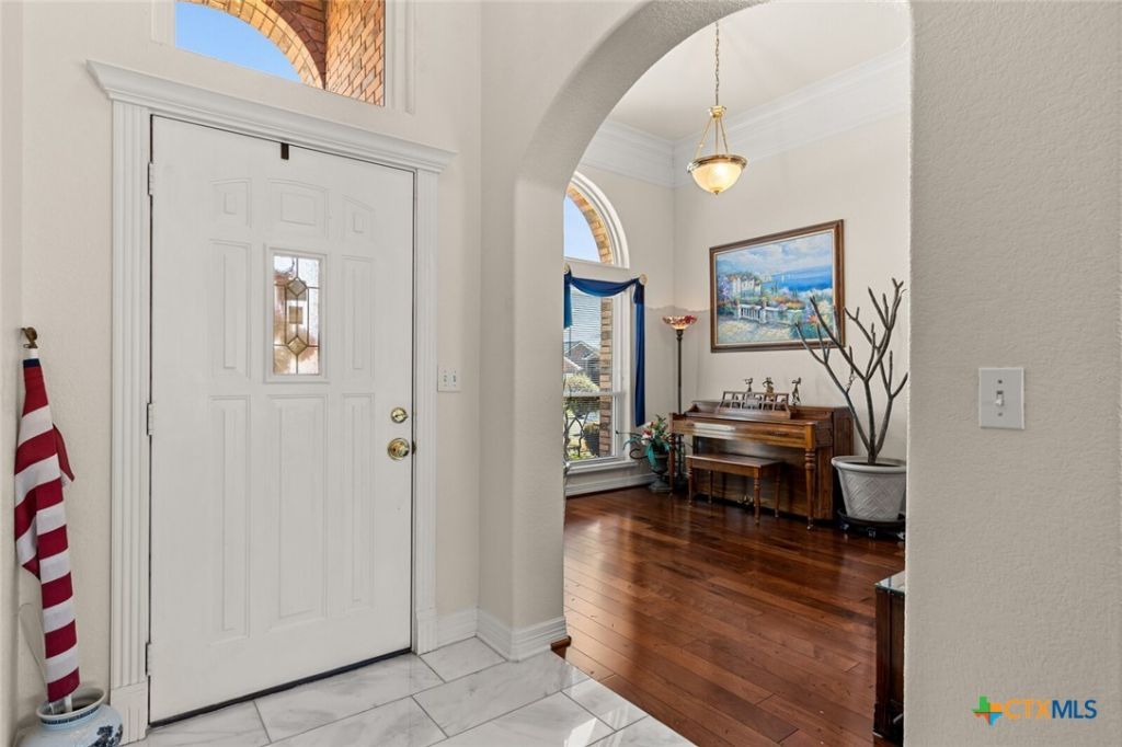 Custom-built home in Harker Heights featuring hardwood and marble flooring throughout. Open, functional floor plan includes a dedicated home office, formal dining room, and sitting room. Kitchen and living areas flow seamlessly for everyday living and entertaining. Major updates complete: new dual-pane windows, 4-year-old roof, and gutters. Energy-efficient and low-maintenance. Move-in ready with no deferred repairs. Backyard retreat with mature pear tree, kumquat tree, and decorative fountain. Beautifully landscaped and well-maintained outdoor space. Covered/patio area ideal for outdoor dining and entertaining. Additional highlights: custom construction, quality finishes, natural light throughout, and pride-of-ownership condition. Convenient Harker Heights location near schools, shopping, and Fort Cavazos.