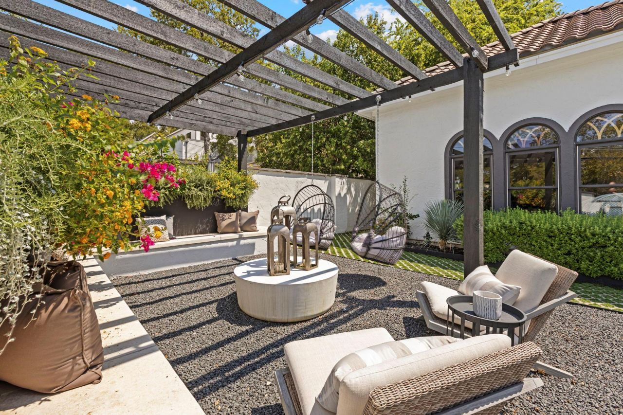Walk to Casis Elementary and Casis Village from this fully walled Tarrytown retreat, offering rare privacy, security, and exceptional value at under $700 per square foot. With sidewalks and a dedicated bike lane just outside, the location blends neighborhood charm with everyday convenience.Inside, 22 ceilings elevate the formal living room, anchored by a dramatic double-sided fireplace. The well-designed layout includes three distinct living areas?formal living, a family room, and an upstairs kids media lounge?plus a dedicated dining room and private office. Incredible closet and storage space, double-paned windows for added noise protection, and an oversized garage enhance comfort and function.The backyard is a true standout: an outdoor living room with fireplace, alfresco dining area, and expansive yard designed for gathering and play. A separate, fully enclosed and conditioned gym casita adds flexibility for fitness, studio space, or private retreat. A rare combination of walkability, privacy, space, and value in the heart of Tarrytown.