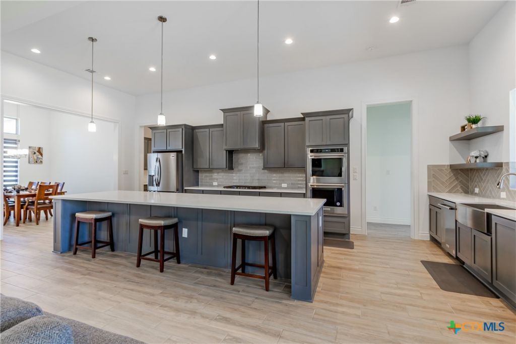 Enjoy quiet country living in the premier community of Belle Oaks ~ just over 3000 sq. ft. of living space ~ this 4 bedroom 3.1 bath is ready for your family! The home sits on a treelined 1.14 acre lot on a quiet cul-de-sac. The flowing and functional floorplan offers 20 ft. ceilings, several large windows and a spacious open kitchen island to the living room. The kitchen is a chef's dream with Kitchen AID appliances including GAS COOKING, double convection wall ovens, and the microwave also functions as a 3rd oven! Ssurrounded by quartz countertops, plenty of cabinets including a butler pantry area and a 8x4 walk in pantry! Living room offers a stone wood burning fireplace with gas starter. Flat Screen above the FP will convey! Wood look tile t/o the home! Study off the living area has barn doors for extra privacy when needed. Home is equipt and ready with CAT 6 network connections t/o for your work and entertainment needs! CUSTOM ELECTRIC BLINDS WITH REMOTES! Floorplan offers ultimate privacy with the owners retreat, second suite, and bedrooms 3&4 all on opposite corners of the home. Owners bath with huge car wash shower includes dual shower heads + a rainfall shower head, and a soaking tub. Barn doors from the bath/bedroom. Enjoy entertaining on the large covered patio open to your private yard with mature oaks. Oversized 3 car garage was extended~32x24~for the ability for larger vehicles and still have room for storage. Plumbed for water softner. Large laundry room and separate drop zone area to store coats and bags out of site. Belle Oaks offers a community pool, park, pickleball and sports courts as well as nature trails. This gated community offers NATURAL GAS, and is located in close proximity to shopping and schools as well as easy travels to SA, Boerne, & Fredricksburg wine country! Top rated Smithson Valley Schools ~ COMAL ISD!