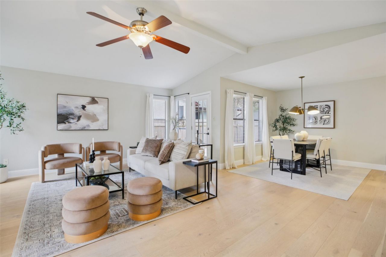 Welcome to 8406 Copano Drive in Maple Run, one of South Austins most established and centrally located neighborhoods in 78749. This updated home combines modern finishes, flexible living space, and exceptional proximity to shopping, dining, and major roadways.Curb appeal stands out immediately with mature oak trees, stone accents, and bold yellow doors that create a memorable first impression. Inside, the fully remodeled kitchen features quartz countertops, white shaker cabinetry, stainless steel appliances, subway tile backsplash, open wood shelving, and updated black hardware and fixtures. Popcorn ceilings have been removed, and fresh neutral paint, updated lighting, and contemporary finishes provide a clean, cohesive look throughout.The functional floor plan offers multiple living and dining areas, including a vaulted main living space and a secondary living room with fireplace. Spacious bedrooms provide flexibility for guests, home office, or additional living needs. Bathrooms have been refreshed with modern vanities, lighting, and tile details for a polished feel.The private backyard includes mature trees, a deck ideal for outdoor dining, a fire pit seating area, and a storage shed for added convenience. The lot offers both usable yard space and shade, creating an inviting outdoor retreat.Location is a major highlight. Just minutes from Mopac and Hwy 290, commuting to Downtown Austin, the airport, and major employers is simple and efficient. Everyday essentials are close by with Costco, Whole Foods, Arbor Trails, Sunset Valley shopping, and Lifetime Fitness all within a short drive. This property also presents potential short term rental opportunity, subject to buyer verification of city regulations. Move in ready, thoughtfully updated, and positioned near South Austins most desirable retail and fitness destinations, 8406 Copano Drive offers comfort, convenience, and long term value.